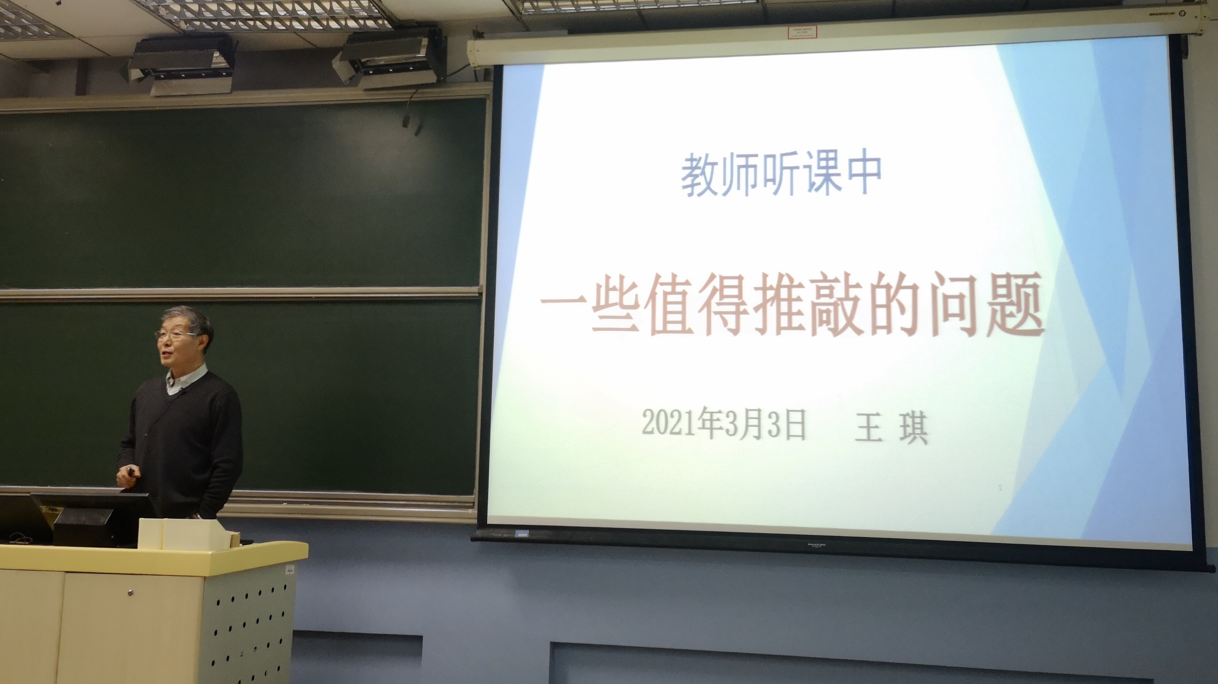 为有组织的开展听课,本次活动特邀校教学指导委员会委员、教学督导组常务副组长王琪教授作《教师听课中一些值得推敲的问题》专题报告。王琪教授结合自身多年从事教学和督导工作的丰富经验,对教务处全员听课工作给出了专业指导,并就目前的听课情况及评分标准提出了中肯建议。