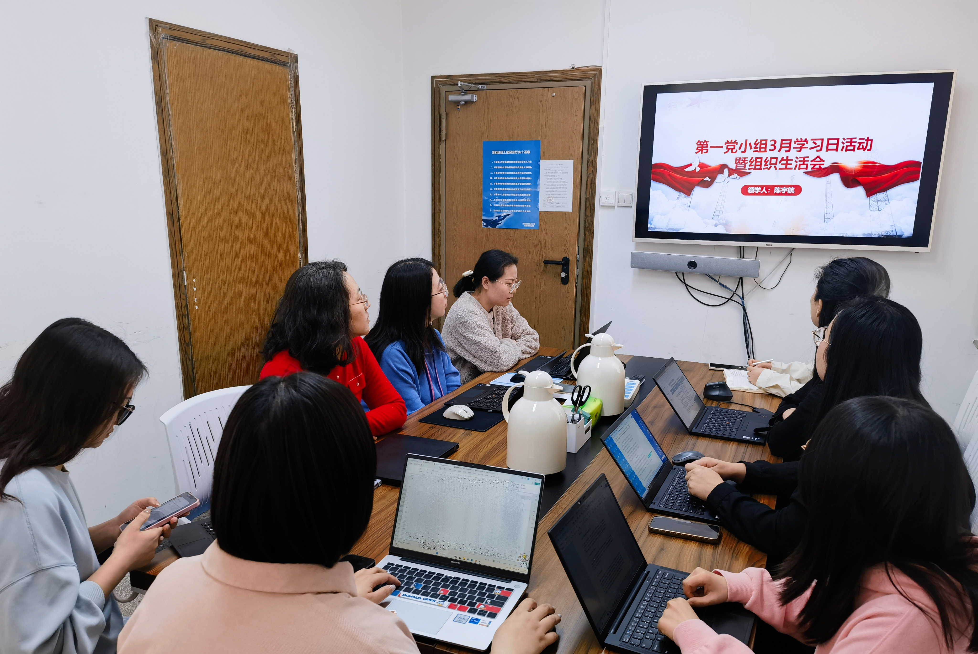 2025年3月26日上午,教务部第一党小组在东办302会议室开展3月学习活动。会议由陈宇航同志主持,全体党小组成员参加。